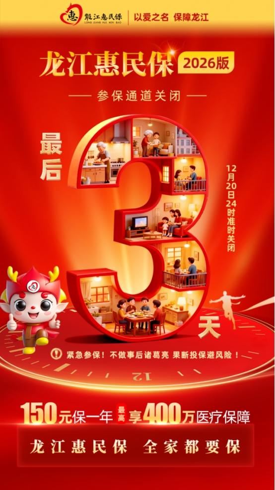 “龍江惠民保2026版”參保通道將于2025年12月20日24時(shí)正式關(guān)閉,當(dāng)前參保已進(jìn)入最后3天倒計(jì)時(shí)。為方便廣大民眾全面了解這一惠民補(bǔ)充醫(yī)療保障政策、精準(zhǔn)把握參保窗口期,相關(guān)部門對產(chǎn)品核心保障內(nèi)容及年度優(yōu)化亮點(diǎn)進(jìn)行梳理說明。