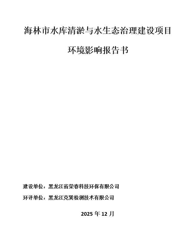 海林市水庫清淤與水生態(tài)治理建設項目環(huán)境影響報告書
